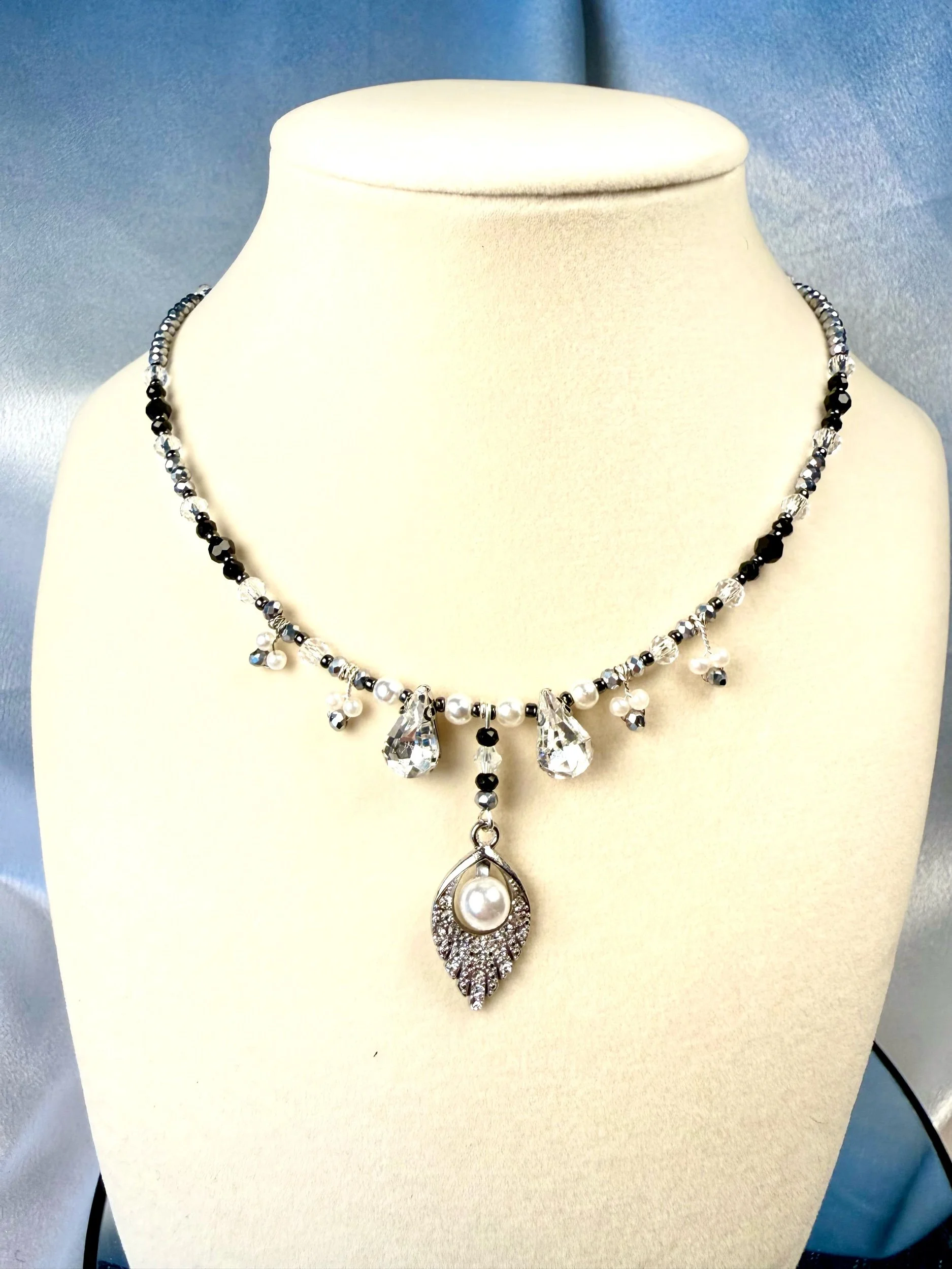 Image 1 of 1 Silver and black with faux pearl necklace $20.00 Get notified by email when this product is in stock. Add To Cart Added!
